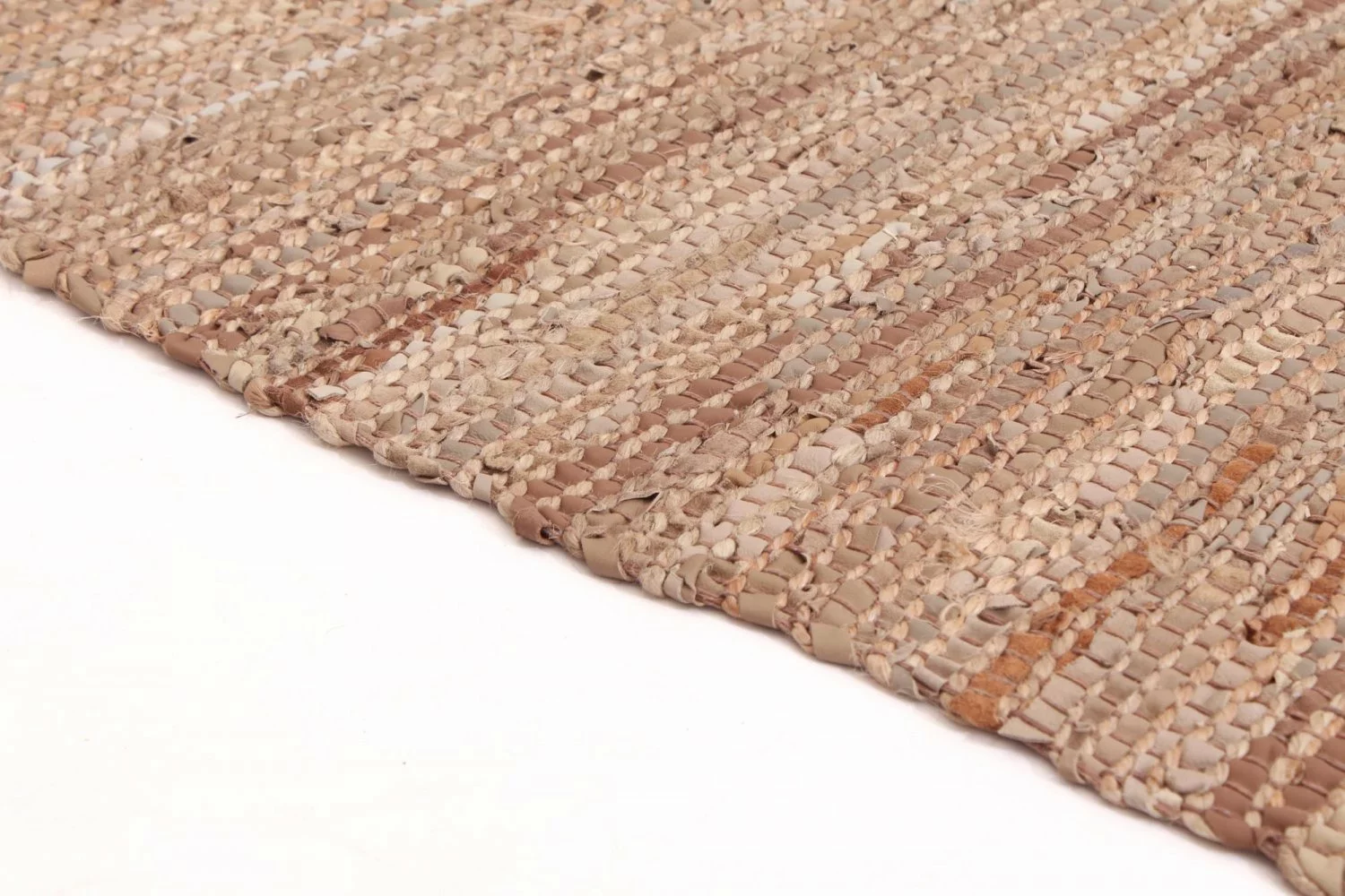 Käsin kudottu matto hamppu ja nahka.