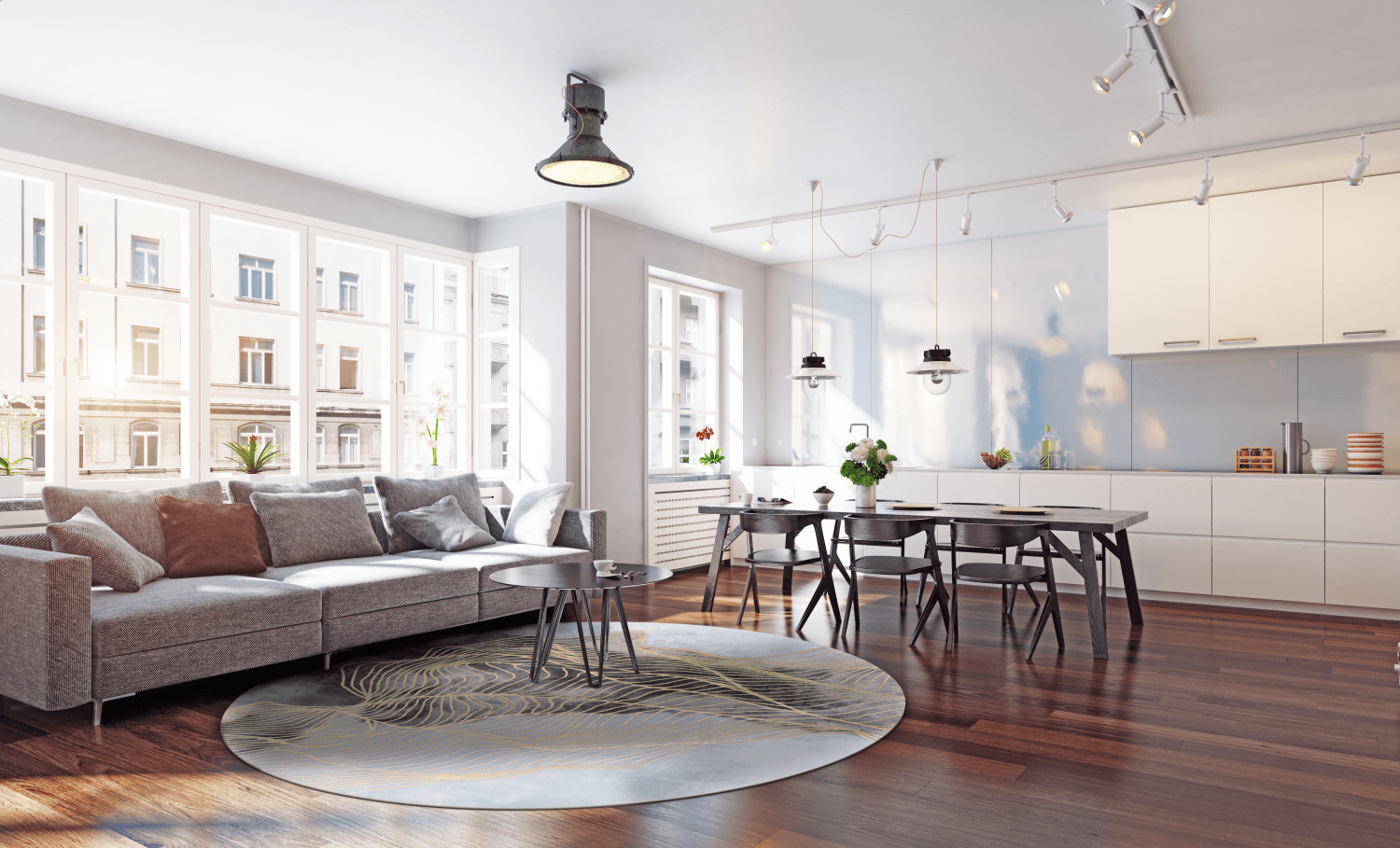 Pyöreät Matot – Ekual (sininen/harmaa/kulta)