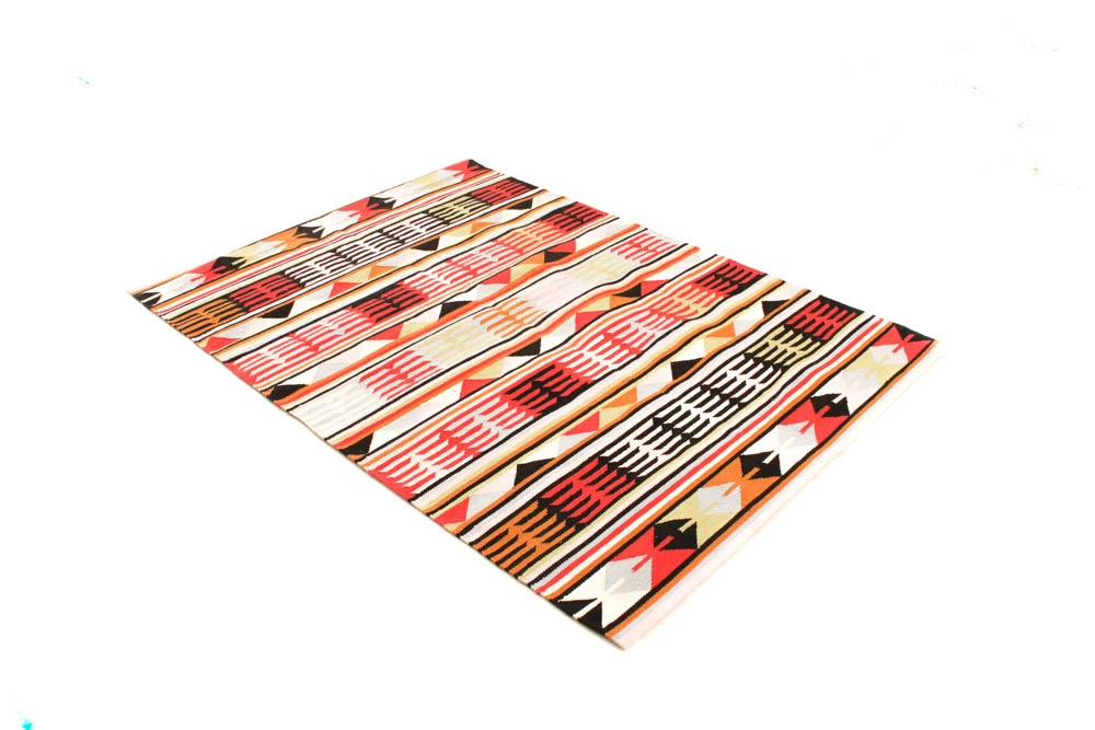 Käsin kudottu räsymatto 100 % puuvillaa.