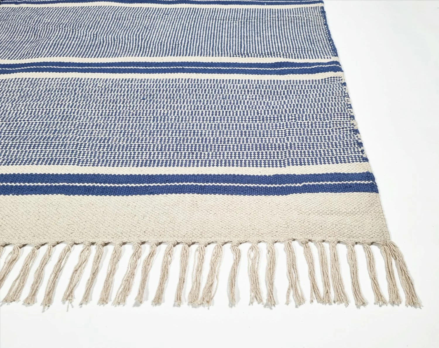 Käsin kudottu räsymatto 100% puuvillaa.